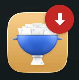 SpamSieve has an indicator in its Dock icon to show when it’s filtering messages (i.e. the mail program is downloading messages). In SpamSieve 2, this was a white circle. In SpamSieve 3.0, the envelope badge on the brown background changed to a down arrow. In SpamSieve 3.2 and later, the arrow is shown on a red background (for compatibility with Liquid Glass).